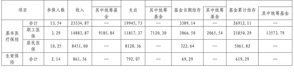 全年基本医疗保险基金总收入、总支出分别为23334.87亿元、19945.73亿元,年末累计结存[1]26912.11亿元。